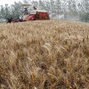 5月21日,收割機在江蘇省淮安市盱眙縣河橋鎮幸福村的麥田里收獲小麥。當日是二十四節氣中的“小滿”,江蘇省小麥種植區陸續進入小麥成熟收獲期。